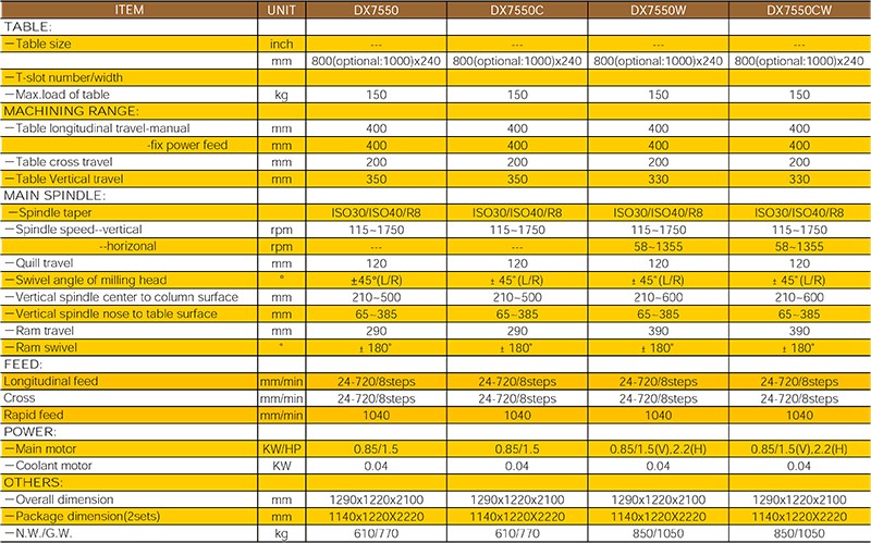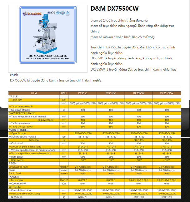 DX7550C là truyền động bánh răng, không có trục chính danh nghĩa Trục chính